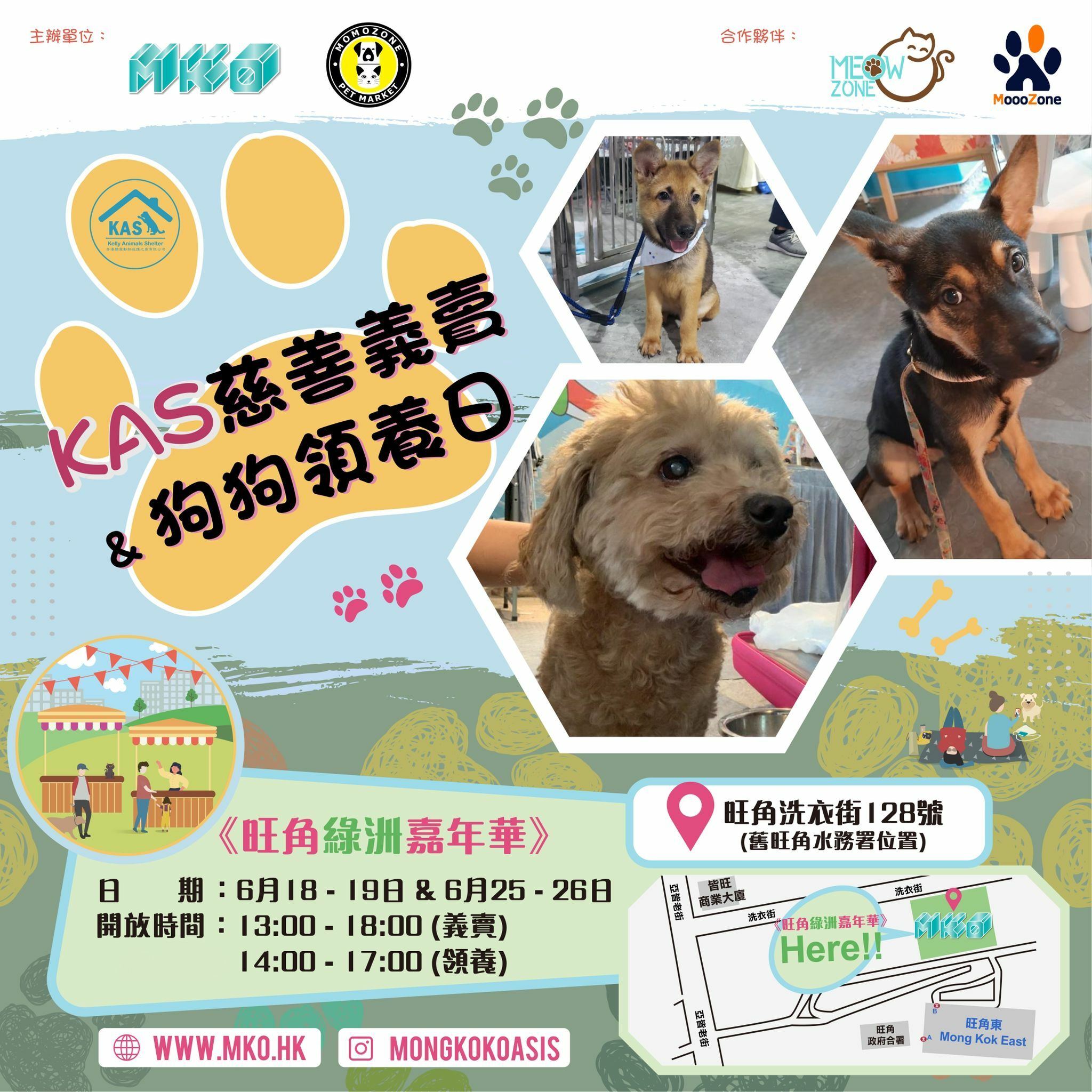 活動更邀請多間慈善團體及非牟利機構參與,希望透過市集活動讓更多人認識及了解。其中寵物慈善團體「KAS - Kelly Animal Shelter」會於寵物區舉行《狗狗領養日及慈善義賣》,希望為待領養狗狗成功尋家,同時讓小朋友可以有機會親親唐唐與寵物互動交流,發放無限正能量!