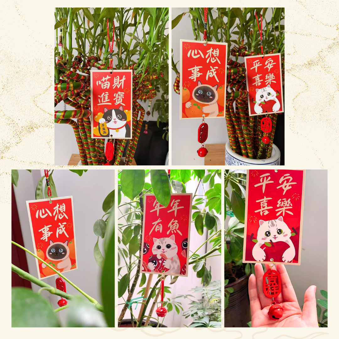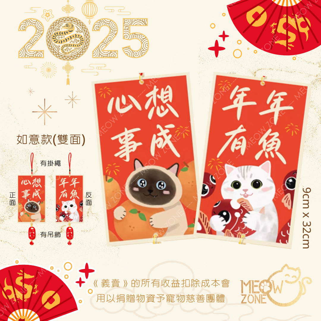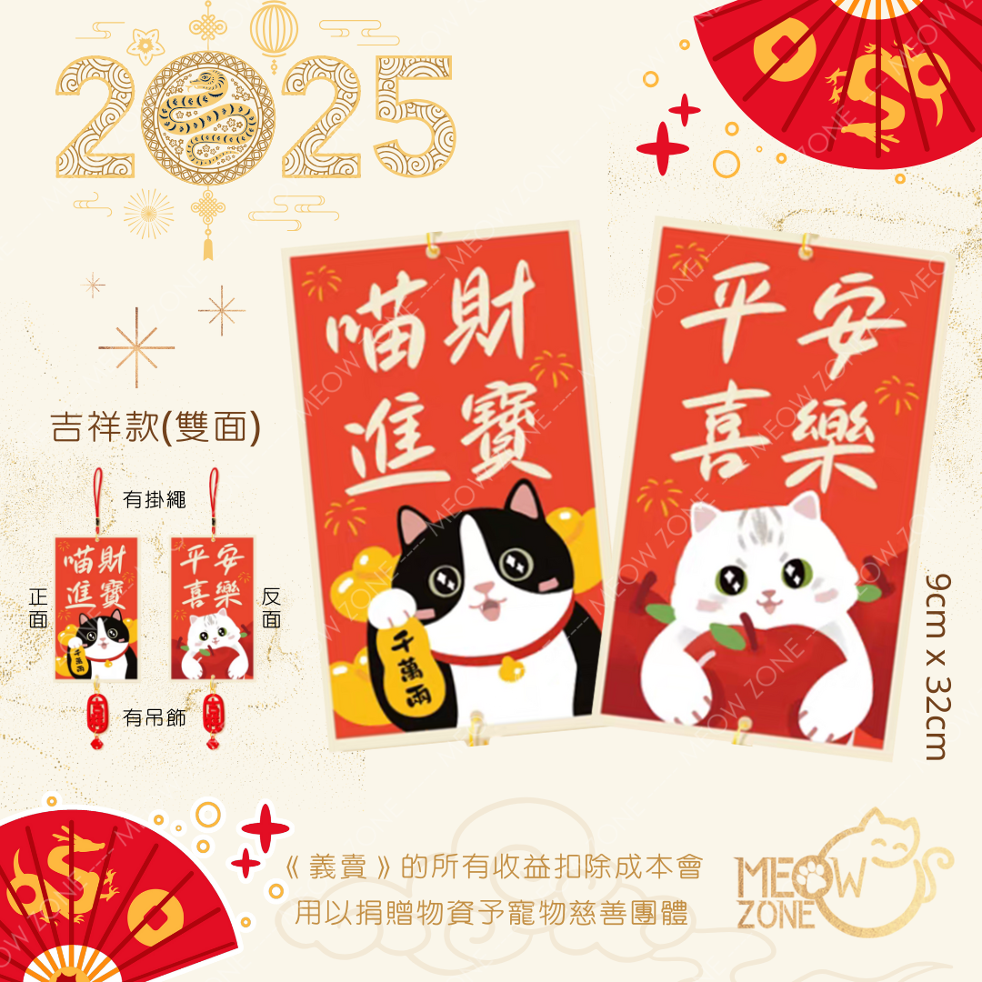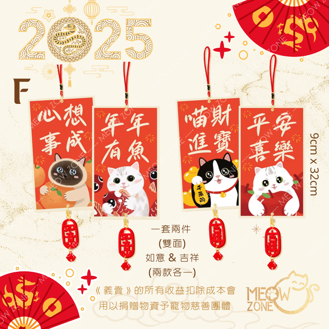 【🧧揮春義賣】超萌喵喵揮春掛飾 - 款 L (雙面 + 掛繩 + 吊飾 ; 2款各1)