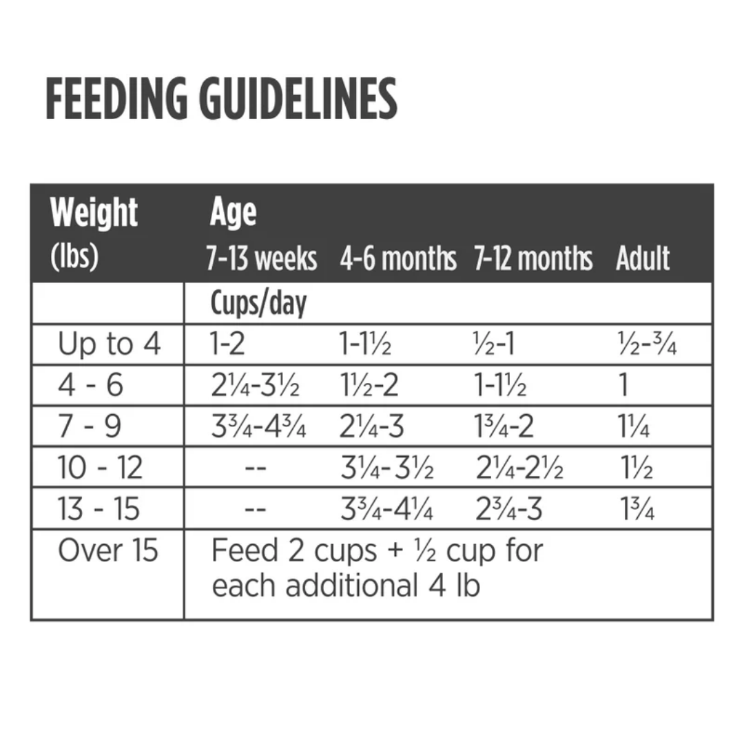 Over 15 lbs.: 2 cups + ½ cup for each additional 4 lbs.