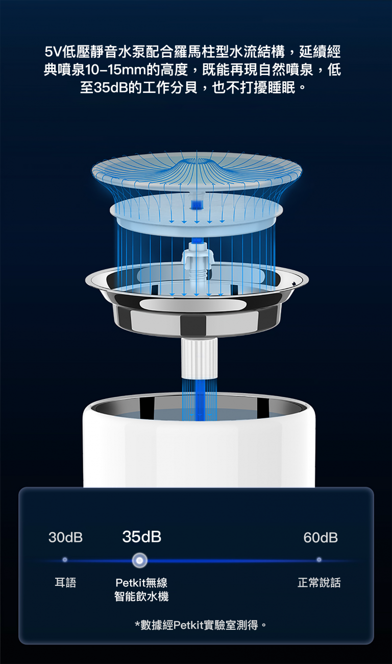 – 高效能靜音水泵, 通過操作測試, 工作噪音約35分貝