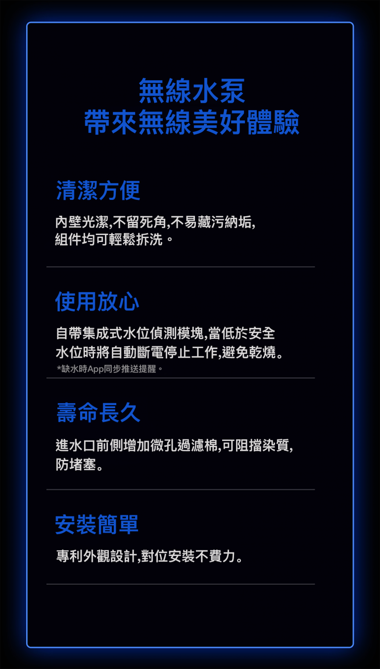 – 無線水泵及儲水桶分離式設計, 水電徹底分離, 方便日常清洗
